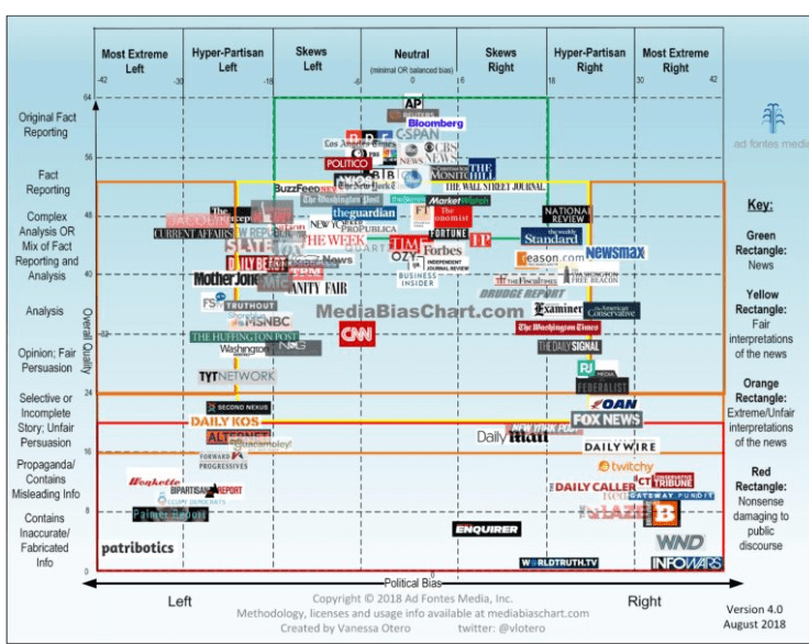 Head em’ Left while they’re young! Local school attempts to use the above chart to tell children which media outlets are “Fair, Original Fact Reporting” and which are “Nonsense Damaging to Public Discourse”. The problem was their extremely untrue, politicized slander of legitimate media organizations backfired, turning their attempt to define “Fake News” into…well…”Fake News”.